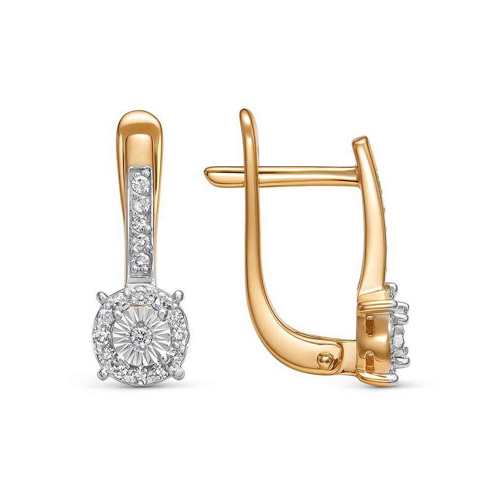 Элегантные серьги из красного и белого золота 585 пробы, украшенные бриллиантами