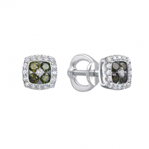 Изысканные серьги-пусеты из белого золота 585 пробы с зелёными и белыми бриллиантами. Необычное сочетание оттенков камней создаёт уникальный и стильный образ, а благородный металл подчёркивает их природную красоту. Представлено брендом VESNA. В комплект поставки входит: