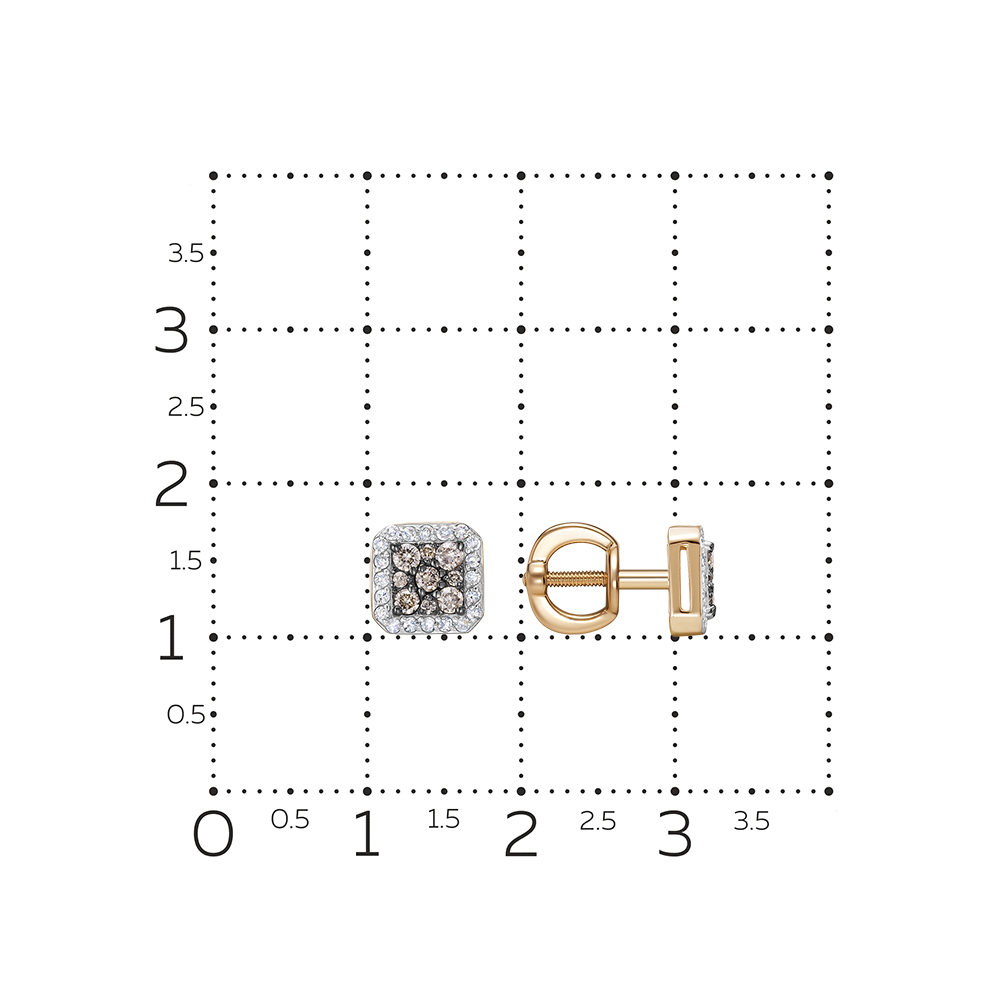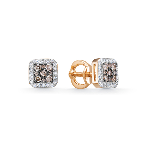 Изысканные серьги из красного и белого золота 585 пробы с белыми и коньячными бриллиантами