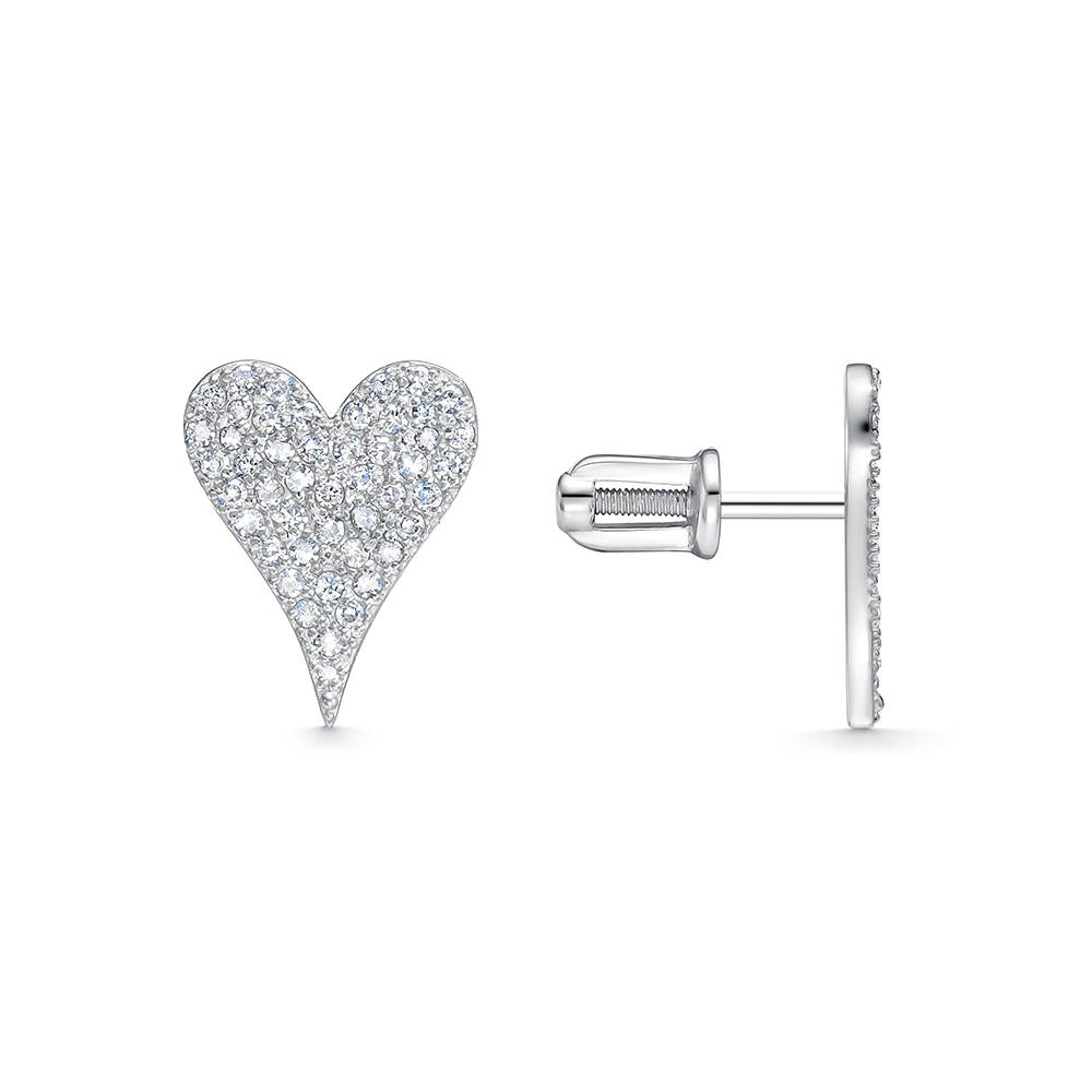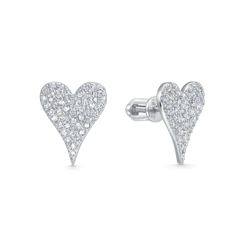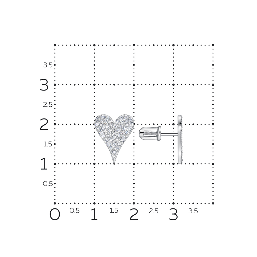 Изысканные серьги-пусеты из белого золота 585 пробы с бриллиантами в дизайне сердечек