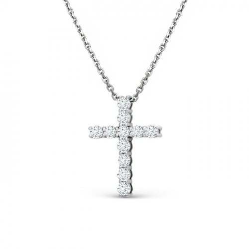 Роскошное цепочное колье с подвесной частью в виде креста, украшенного сверкающими бриллиантами, выполнено из красного золота 585 пробы
