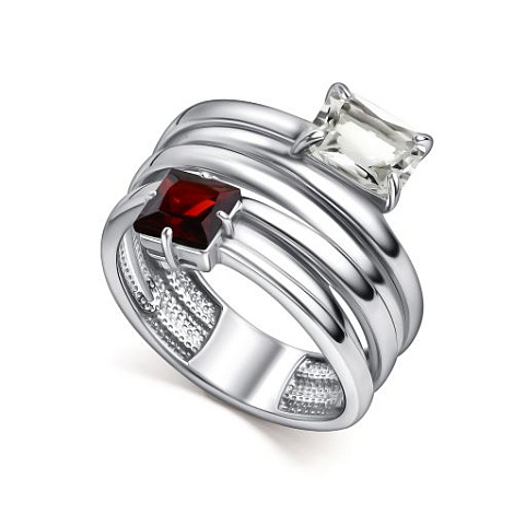 Элегантное кольцо из серебра 925 пробы с гранатом и горным хрусталём. Насыщенный красный цвет граната в сочетании с прозрачностью хрусталя создаёт выразительный и стильный образ. Представлено брендом АЛЬКОР. Средняя характеристика камней: 1 Гранат Бордовый Квадрат 0,831, 1 Горный хрусталь Белый Октагон 0,793 В комплект поставки входит: